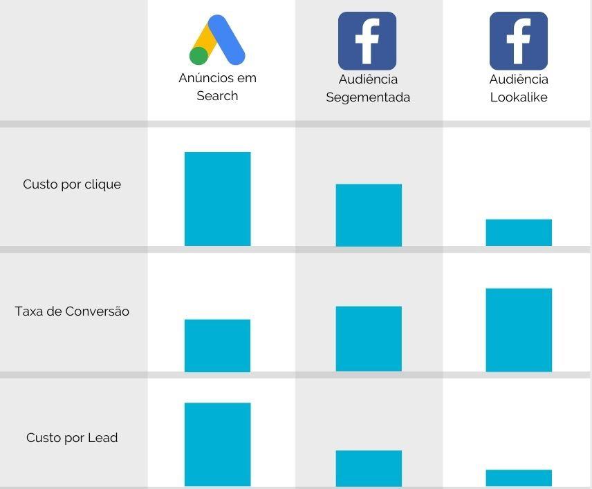 O Facebook permite ainda criar as Lookalike Audience. Esta ferramenta traz uma audiência nova com base no perfil das pessoas que interagem e convertem com os nossos anúncios, expandindo o alcance dos anúncios para novos potenciais clientes.